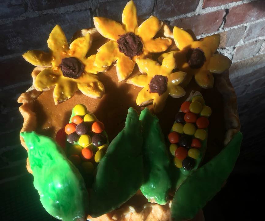 Okay, I promised….here’s the pie I made last weekend as a tribute to my American friends for their Thanksgiving. It’s Sweet Potato Pie with Reese’s Pieces Corn on the Cobs 🙂