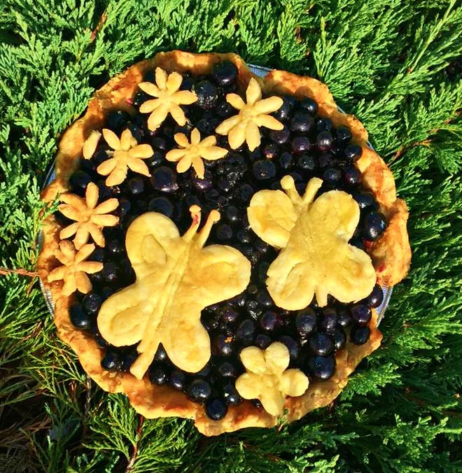 I’ve also had a few friends’ celebrating their birthdays this past week as well. Here’s a fun pie I made for my friend Heather. She’s an amazing gal who deserves to be spoiled on her birthday. She loves butterflies almost as much as fresh blueberries…